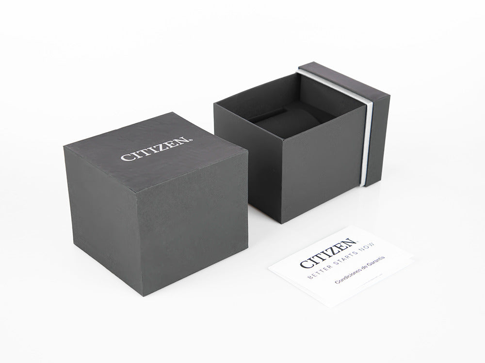 Votre commande comprendra votre Citizen dans son emballage d’origine, accompagné de tous les documents officiels Citizen ainsi que d’une garantie officielle Citizen tamponnée.