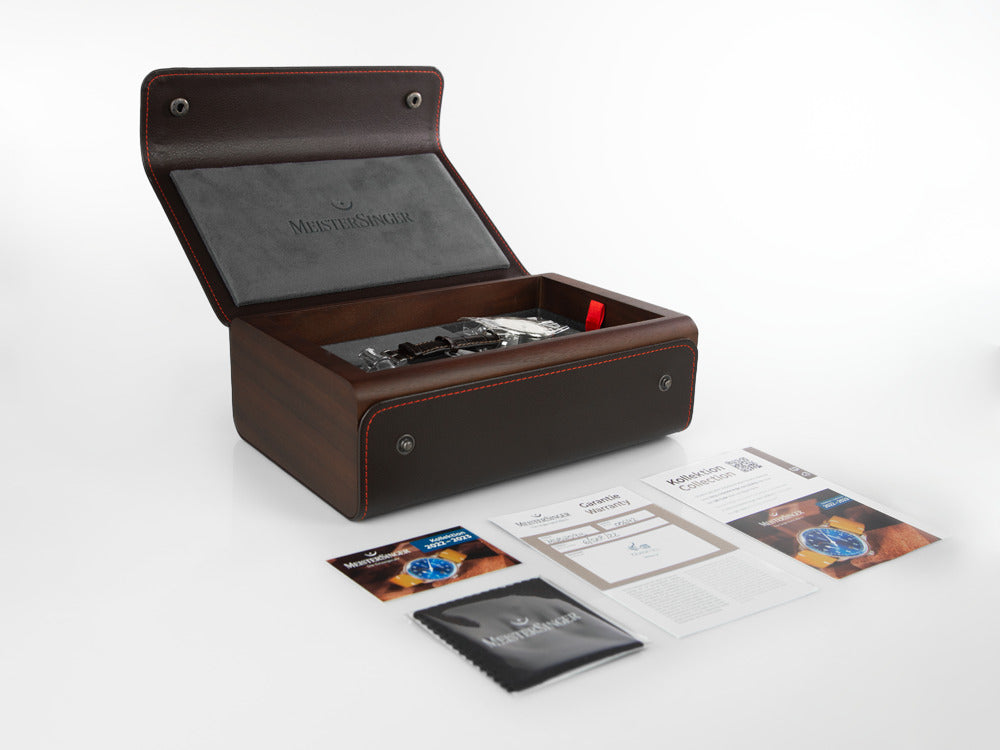 Votre commande comprendra votre Meistersinger dans son emballage d’origine, accompagné de tous les documents officiels Meistersinger ainsi que d’une garantie officielle Meistersinger tamponnée.