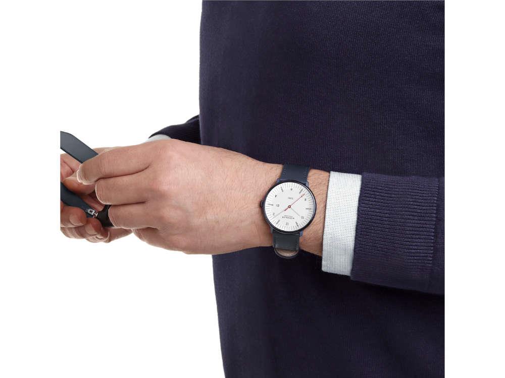 • La Mondaine Doppio MLE.41910.LQV allie l'innovation durable de son mécanisme solaire à un design contemporain marqué par son boîtier en acier inoxydable poli avec finition IP Blue de 41 mm. Le bracelet en cuir vegan noir apporte contraste et sobriété, tandis que le verre saphir double dôme avec traitement antireflet rehausse la profondeur de son cadran concave.