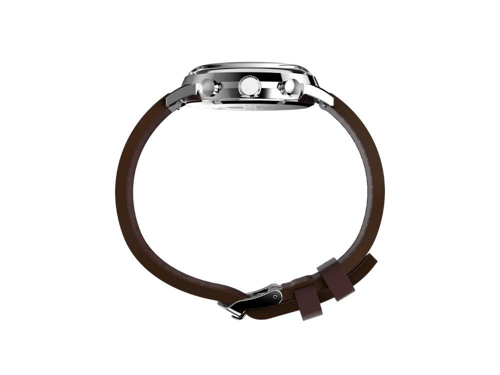 • La Timex Marlin Chronograph Tachymeter 40 mm TW2W10200 marque un tournant dans la gamme Marlin, puisqu'il s'agit de son premier chronographe à mouvement quartz. Elle conserve l'esprit vintage de la collection avec ses index rétro-carrés à 3, 9 et 12 heures, mais ajoute une échelle tachymétrique utile pour mesurer la vitesse avec style.