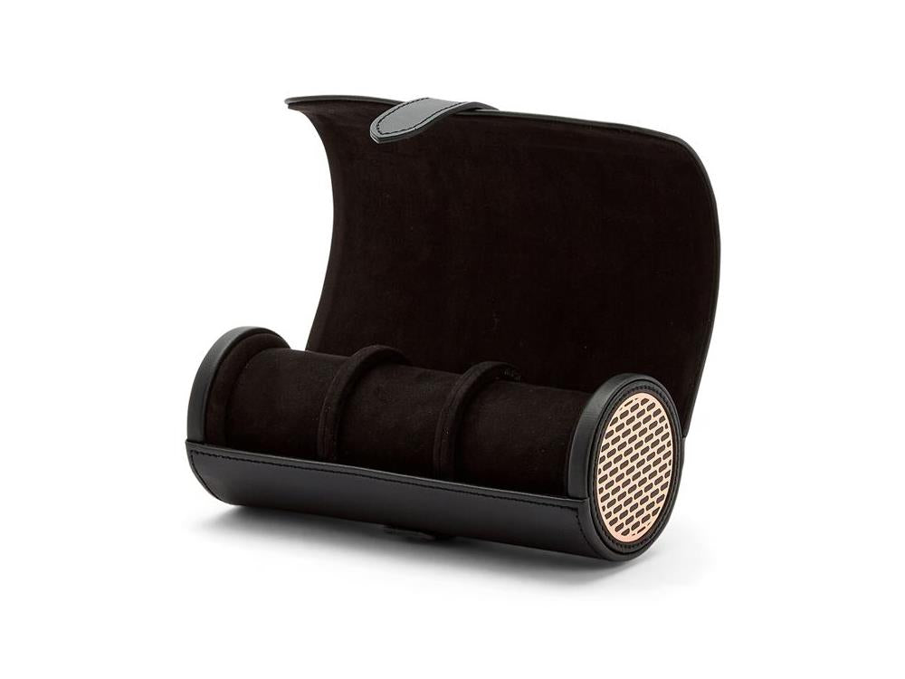 • Gardez vos garde-temps en sécurité et avec style grâce à ce triple rouleau de montres Axis. Il peut contenir 3 montres, avec 2 gardes-montres et une fermeture à pression. Il comporte une capsule secrète pour bijoux (brevet en cours d'homologation) à l'intérieur du rouleau de montres, avec trois compartiments pour conserver en toute sécurité les boutons de manchette, les bagues et autres petits objets de valeur.