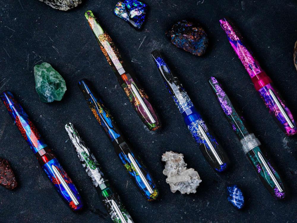 • Le stylo plume BENU AstroGem Midas est une pièce qui allie design d'avant-garde et fonctionnalité. Inspiré par l'astéroïde interstellaire Oumuamua, son corps en résine de haute qualité présente une teinte vert olive vibrante entrelacée de bruns profonds et de reflets cuivrés, évoquant la richesse et le mystère du cosmos.